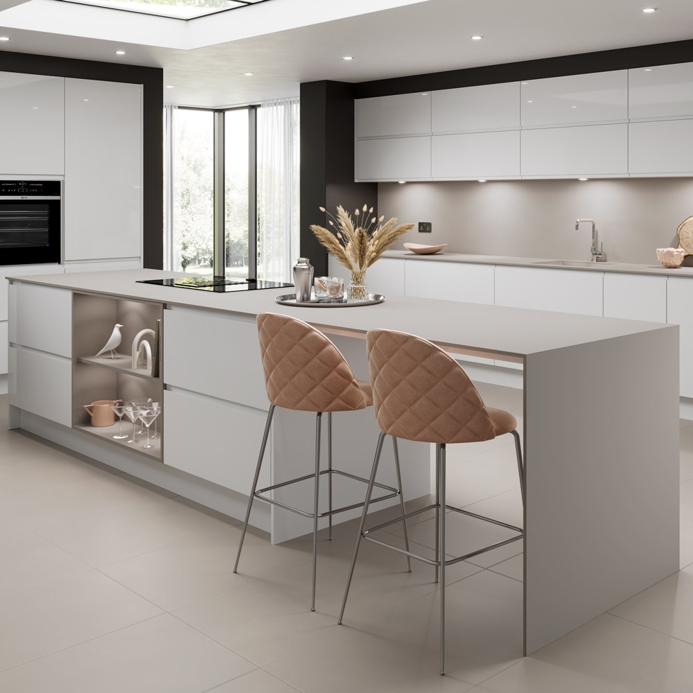 Solid FENIX NTMยฎ is available in a super-slim 12mm profile, in 10 beautiful as well as the Beige Arizona Solid Fenix Worktop saturated ultra-matt finishes that are wonderfully soft to the touch. These worktops feature a solid colour core throughout, creating a luxurious design feel offering benefits such as under-mount sinks and drainage grooves.