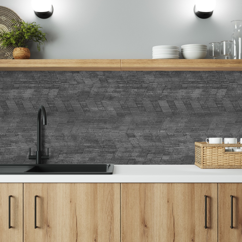 Bring your Dream Kitchen Design to life with a Concrete Chevron Alloy Splashback Heat Resistant and Waterproof Kitchen Splashbacks