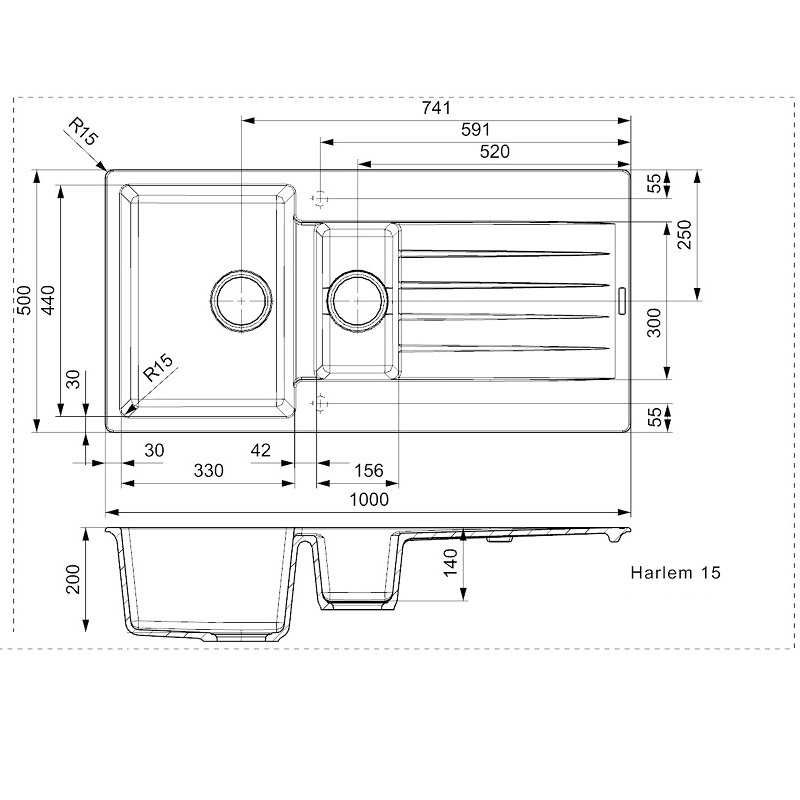 Harlem Black Silvery Granite Inset 1.5 Bowl Sink