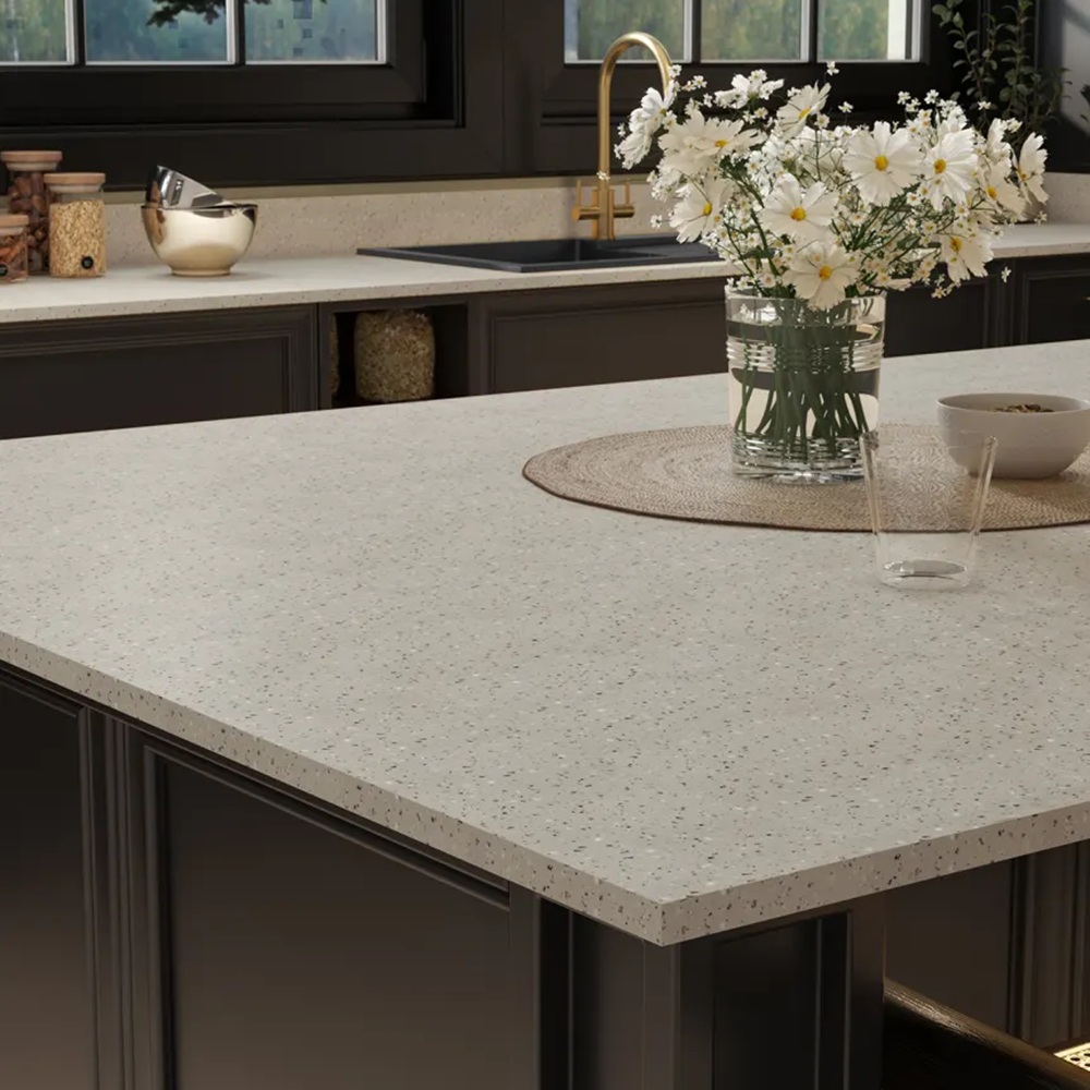 Create a glossier look by polishing this solid all the way through worktop โ€“ the more you polish, the greater lustre youโ€™ll achieve from Sahara Shell Solid Surface Worktop. Need the kit to polish & install your solid surface worktops? Order our Solid Surface Worktop Installation Kit from us today and save on delivery when you order with a worktop.